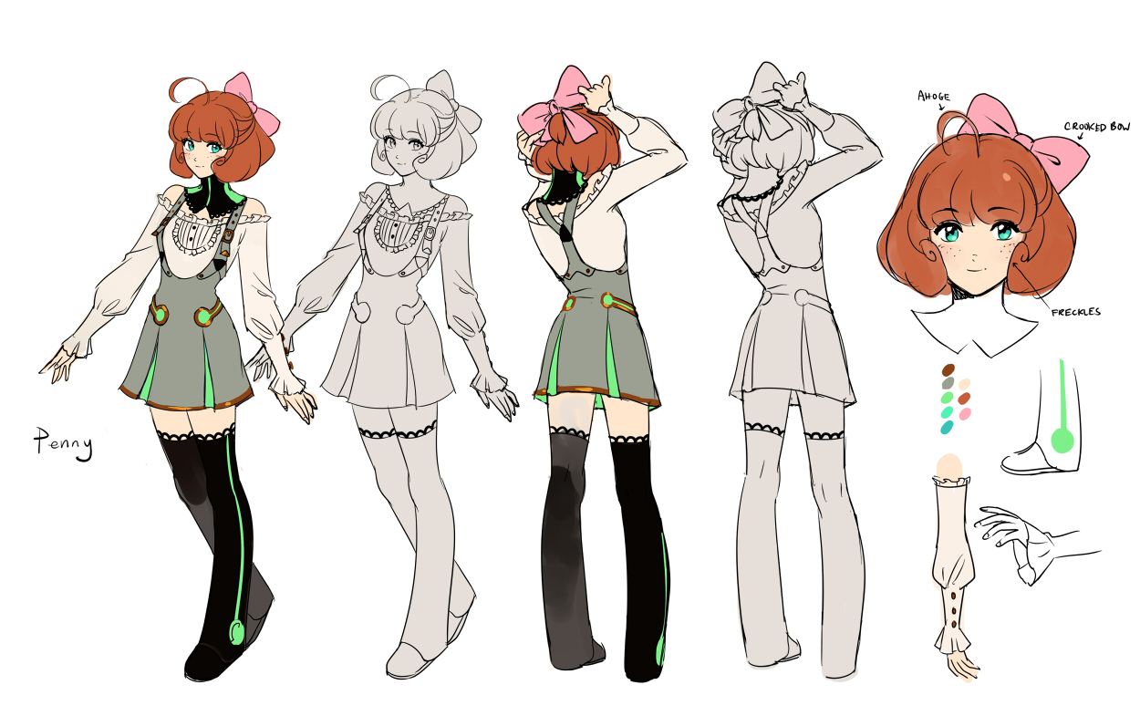 FEATURES Green lines on the sides of her stockings, sometimes glowing. Freckles.